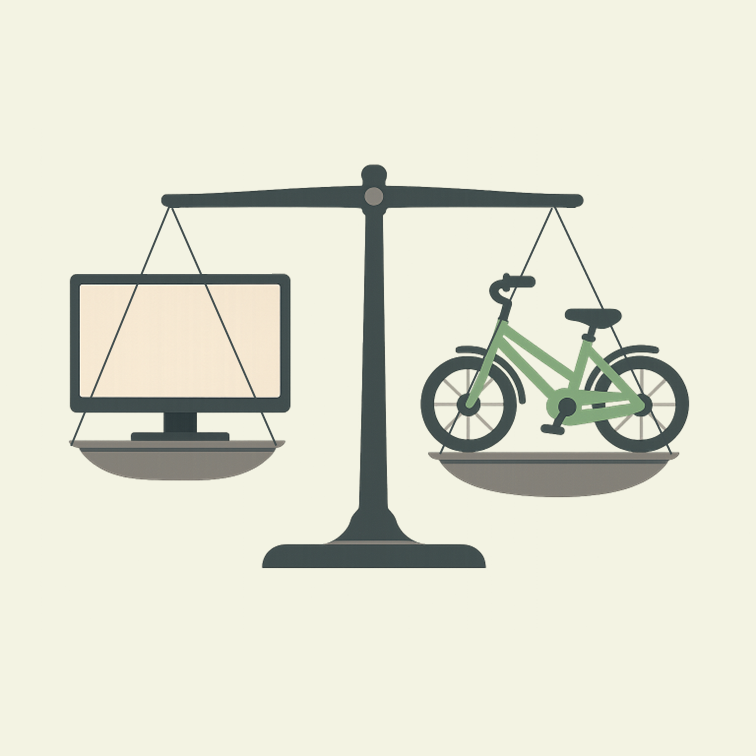 - Zeigt das Kind Bewegungsfreude, z. B. beim Fahrradfahren oder Fußballspielen? – Wenn nein: Bildschirmzeit reduzieren. Bewegung fördern.